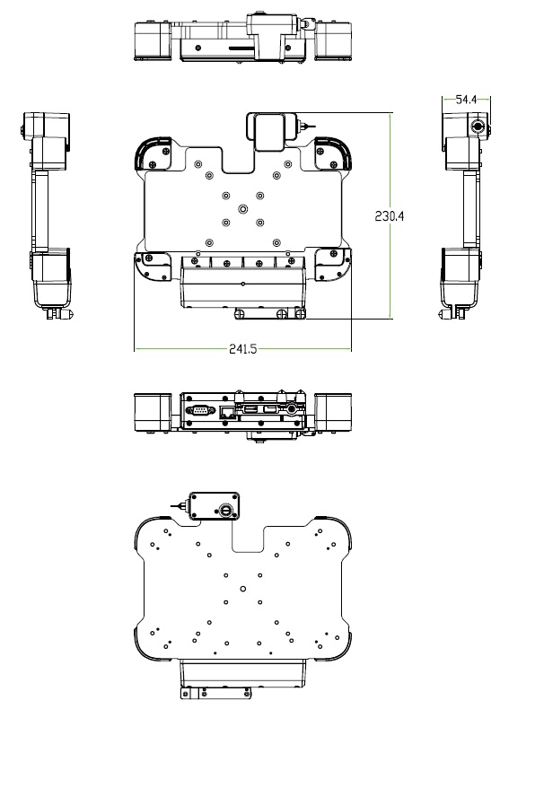 It is possible to use four different inputs/outputs in this holder: 1x RS232, 1x RJ-45 and 2x USB 2.0 which are working after plugging DC.