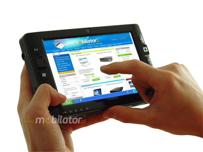 Small sizes and light weight these UMPC permit to unlimited traveling and moving. Seven inch touch screen display and optical pointer take place standard peripherals devices (keyboard, mouse).
