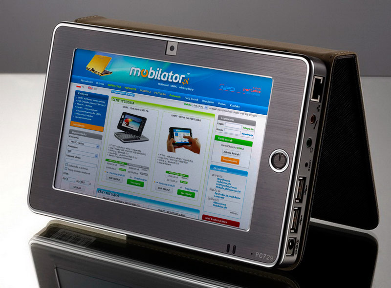 Small sizes and light weight these UMPC permit to unlimited traveling and moving. Seven inch touch screen display take place standard peripherals devices (keyboard, mouse).