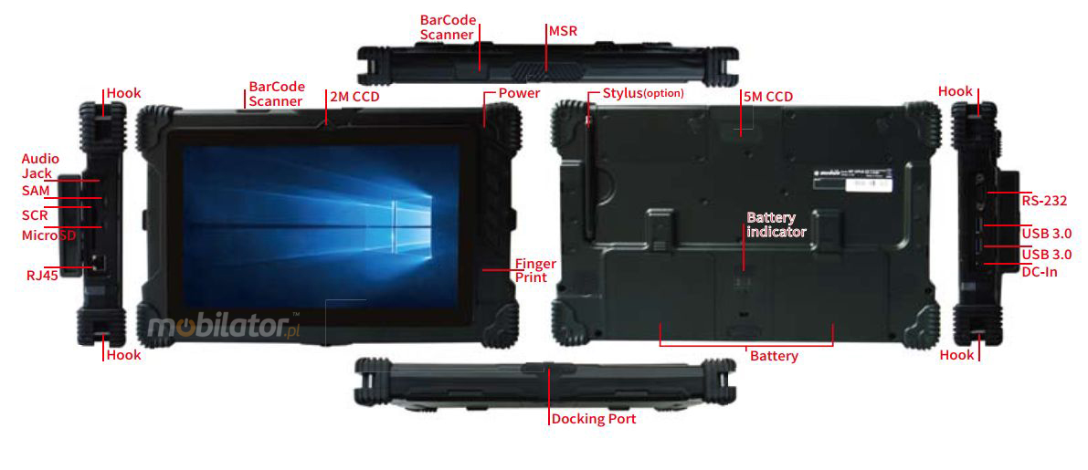AP-10 is equipped with a tablet (optional) on 4G and 72-channel GPS armored performed. This small komputerek is made of very durable materials. It is well protected against falls, shocks or vibrations. He also is harmless water (IP65) or Low Temperatures. Equipped with fast DDRIII RAM expandable to 8GB and SSD.