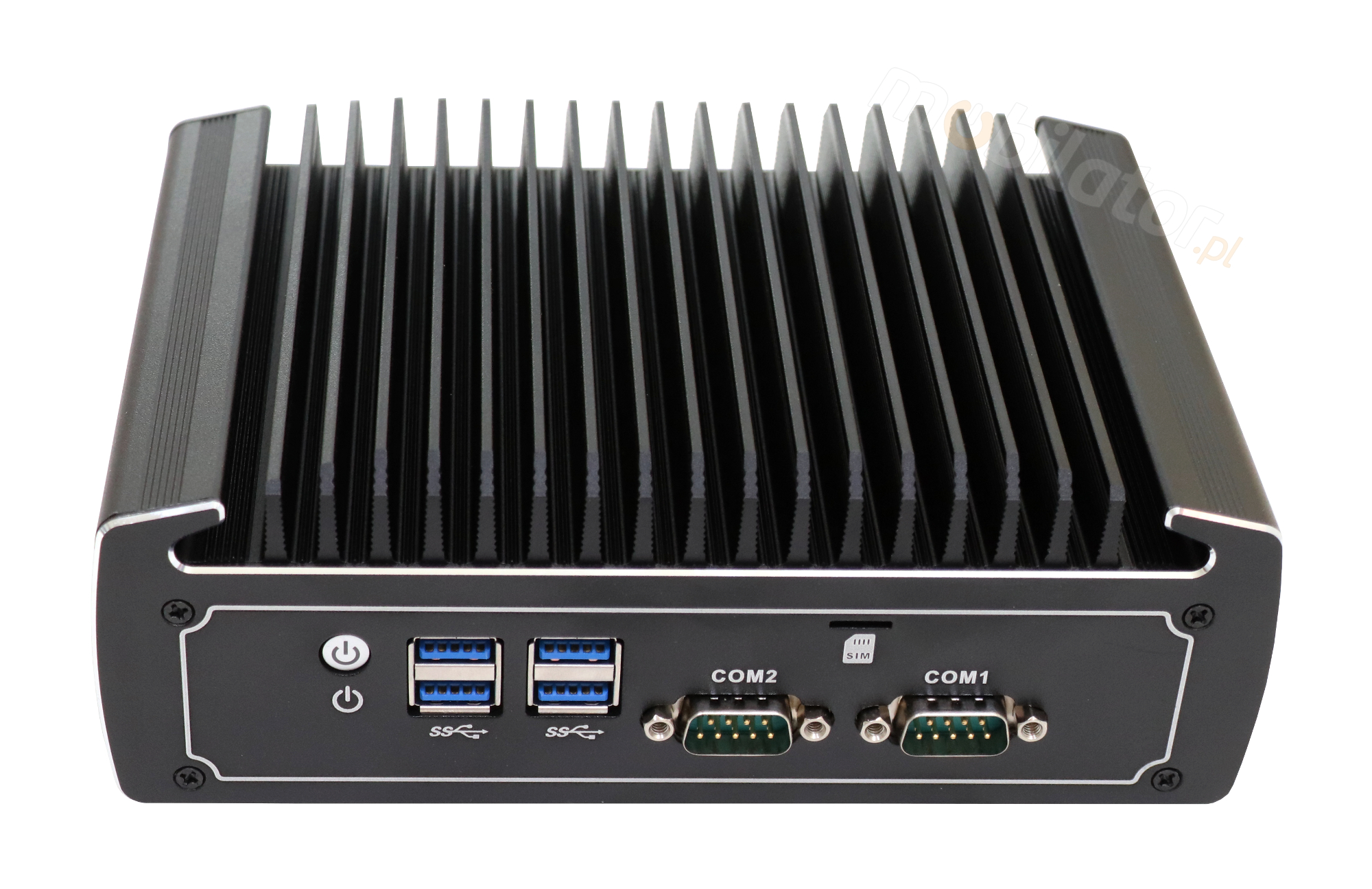 The industrial Mini PC uses a proven cooling system, based only on solid elements, mainly heat sinks. The system uses the phenomenon of metals passing thermal energy into the environment - there are no additional moving elements in the form of eg fans. This solution ensures noiseless operation, lower failure rate and greater protection against dust and other dirt while reducing the amount of energy consumed.