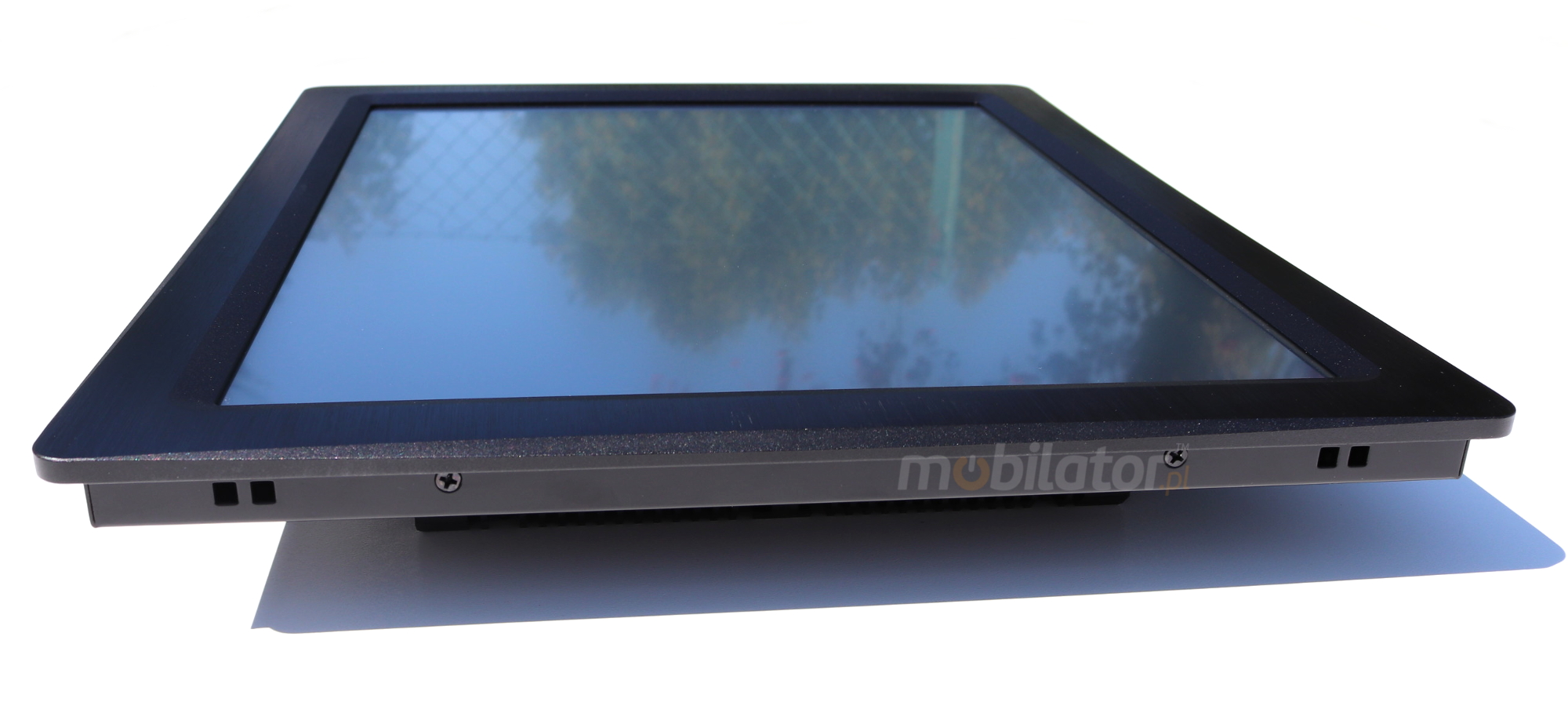 Panel PC has a high quality casing made from steel alloys. It is a very crucial component of cooling system thanks to openings allowing air flow inside casing, supporting constantly working fan. Overall design concentrates on simplicity and functionality which are in high demand amongst professionals.