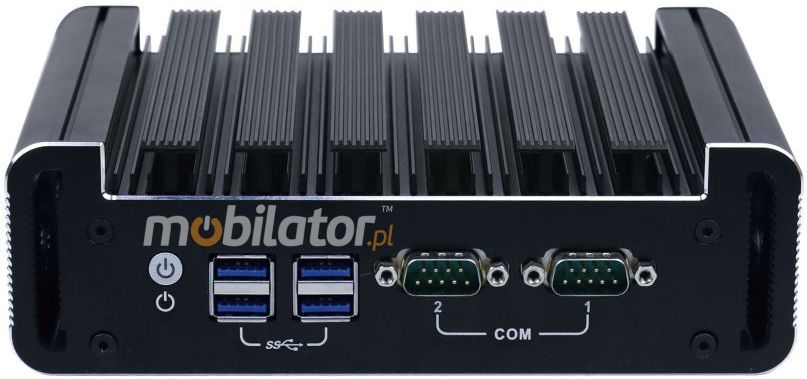 The industrial Mini PC uses a proven cooling system, based only on solid elements, mainly heat sinks. The system uses the phenomenon of metals passing thermal energy into the environment - there are no additional moving elements in the form of eg fans. This solution ensures noiseless operation, lower failure rate and greater protection against dust and other dirt while reducing the amount of energy consumed.