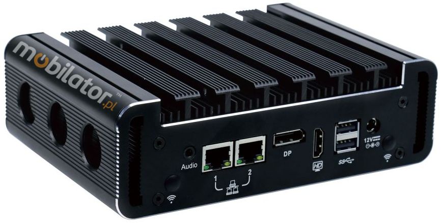 The industrial Mini PC uses a proven cooling system, based only on solid elements, mainly heat sinks. The system uses the phenomenon of metals passing thermal energy into the environment - there are no additional moving elements in the form of eg fans. This solution ensures noiseless operation, lower failure rate and greater protection against dust and other dirt while reducing the amount of energy consumed.