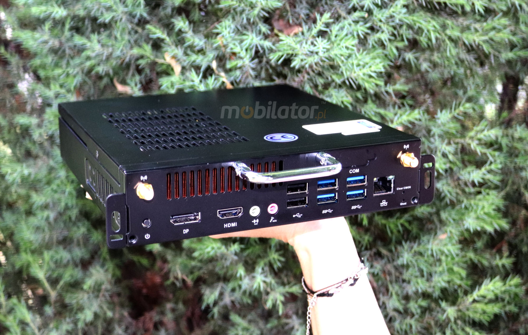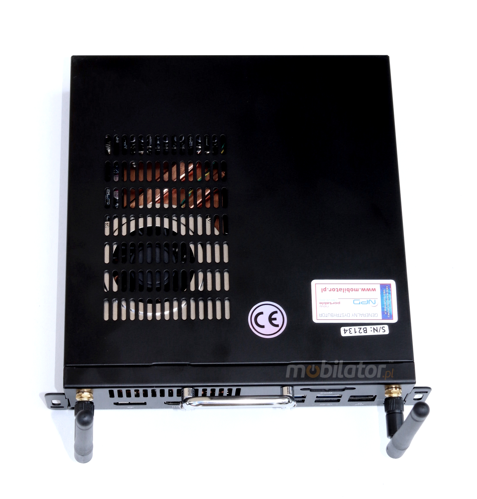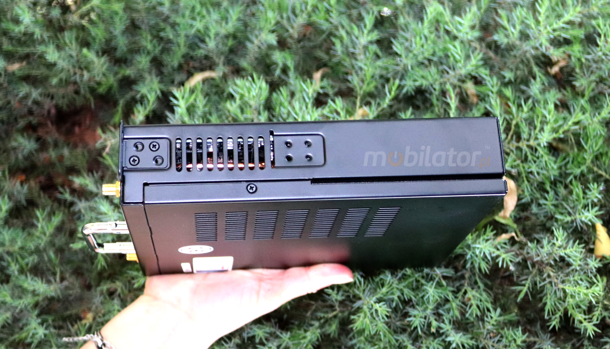 The industrial Mini PC uses a proven cooling system, based only on solid elements, mainly heat sinks.The system uses the phenomenon of metals passing thermal energy into the environment through openings in the housing. This solution provides better cooling in relation to pasive cooling.