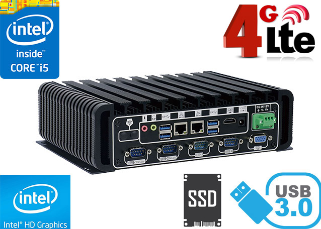 Integrated card - Intel i211AT 1000M Lan and 4G module allow connection to the network. The computer is equipped with: two LAN ports, two HDMI ports, fourUSB 2.0ports, four USB 3.0 ports, six COM (RS232) ports, one VGA output, one Audio input and one Mic output.