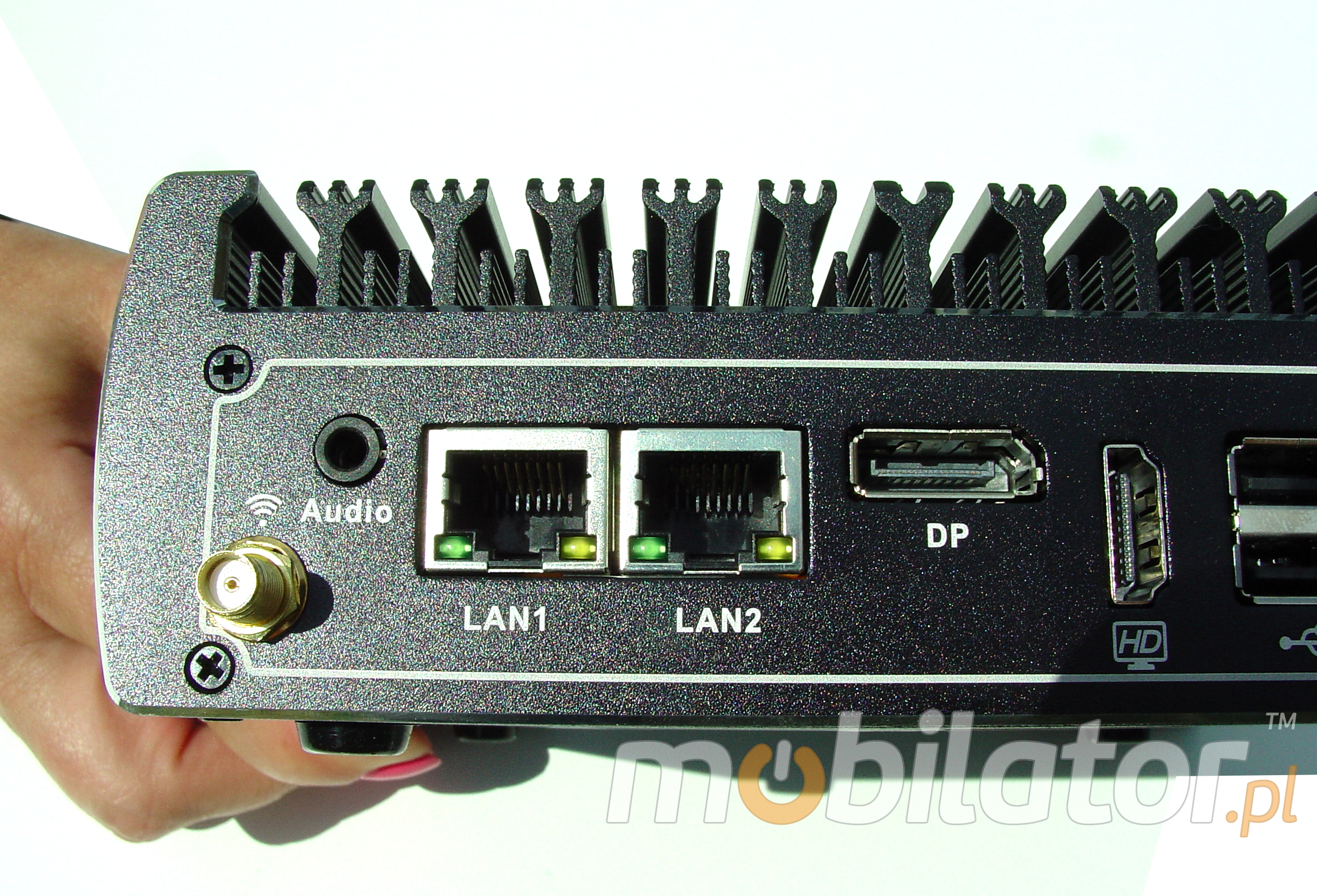Integrated card - RTL8111E 10/100/1000Mallow connection to the network. The computer is equipped with: two LAN ports, one HDMI port, one DP port, two USB 2.0 ports, four USB 3.0 ports, two COM RS232 ports.