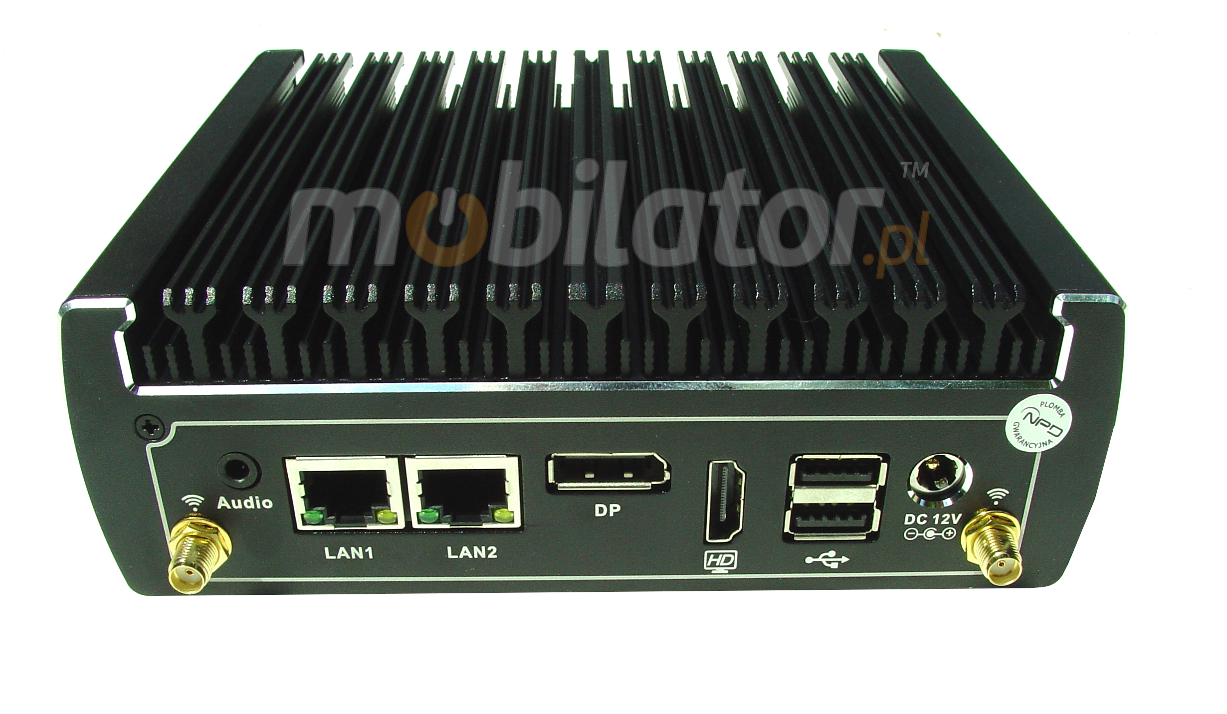 Integrated card - RTL8111E 10/100/1000Mand 3G module allow connection to the network. The computer is equipped with: two LAN ports, one HDMI port, one DP port, two USB 2.0 ports, four USB 3.0 ports, two COM RS232 ports.