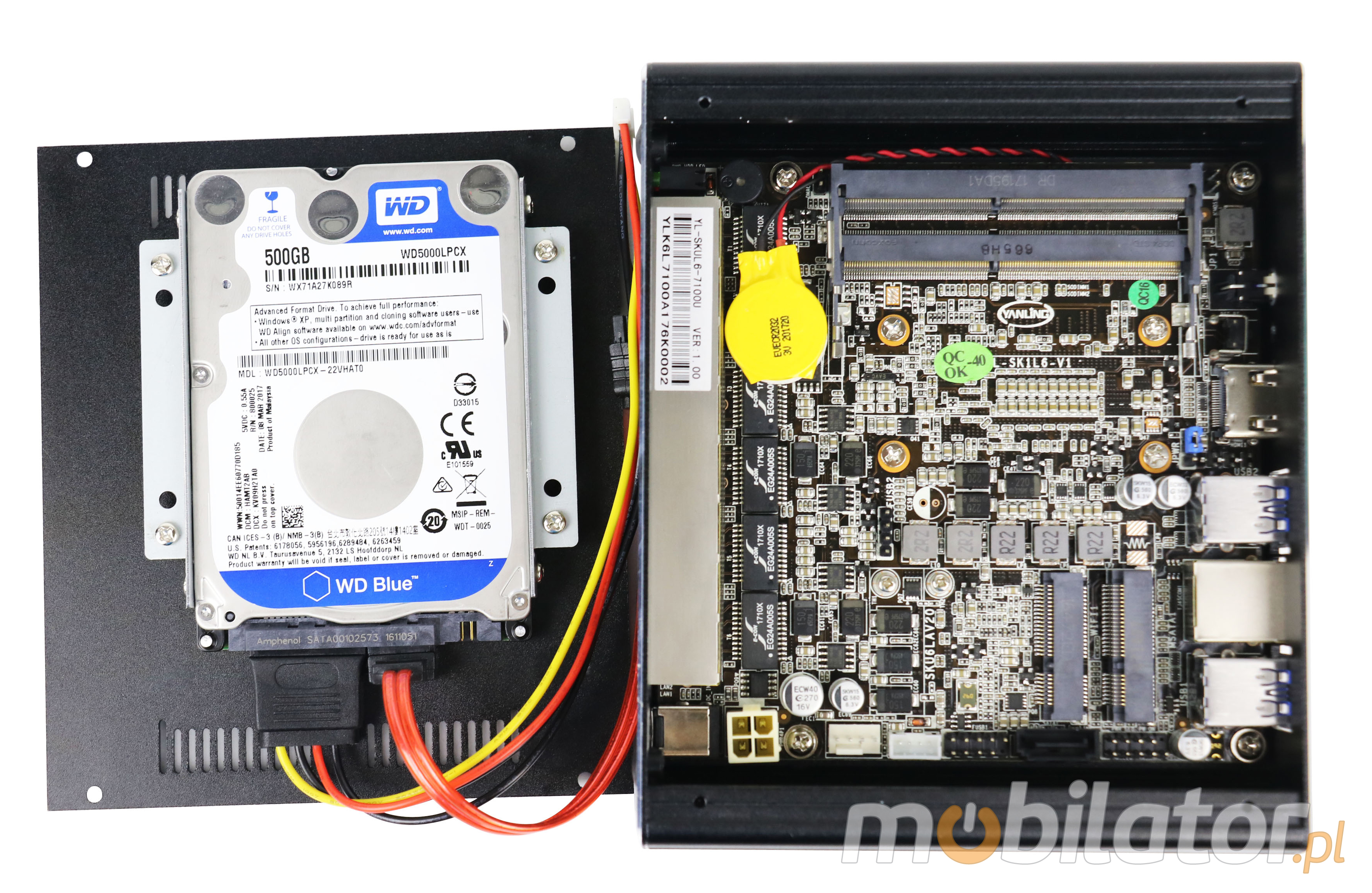 The industrial Mini PC uses a proven cooling system, based only on solid elements, mainly heat sinks.The system uses the phenomenon of metals passing thermal energy into the environment - there are no additional moving elements in the form of eg fans.This solution ensures noiseless operation, lower failure rate and greater protection against dust and other dirt while reducing the amount of energy consumed.