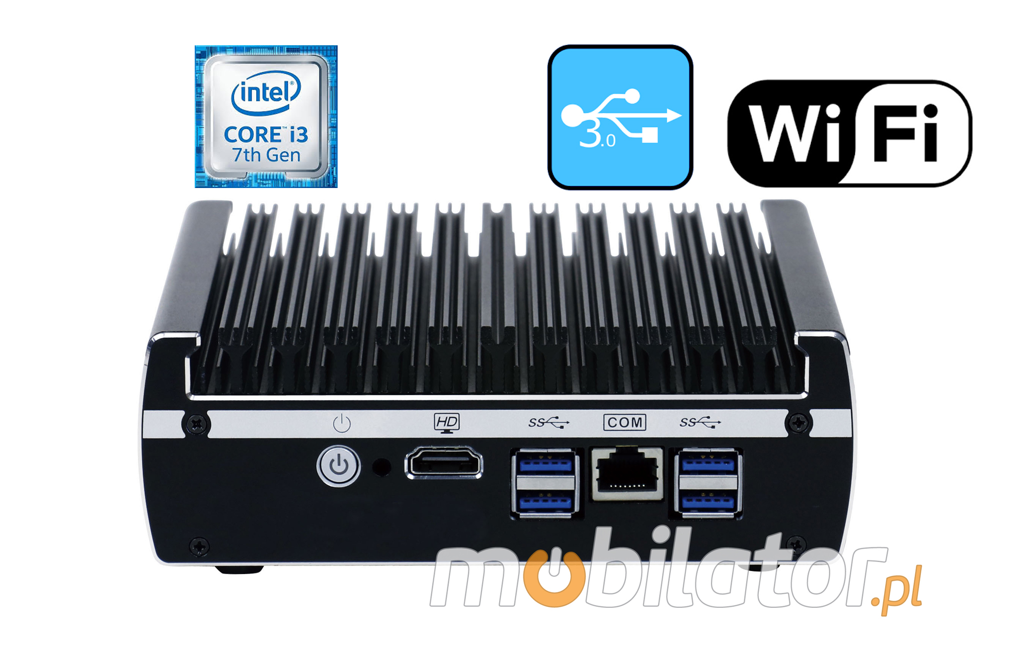 The industrial mini-computer IBOX-NM31B uses an efficient and energy-saving Intel Core i3 7100U processor.Inside it there are two cooperating cores enabling more efficient processing of many tasks at the same time.The shared cache memory in which the multilevel hierarchy is used is dynamically allocated to each processor core depending on the load.This reduces the average access time to the main memory.Improved graphics card technology allows you to enjoy movies in full resolution and Full HD quality.