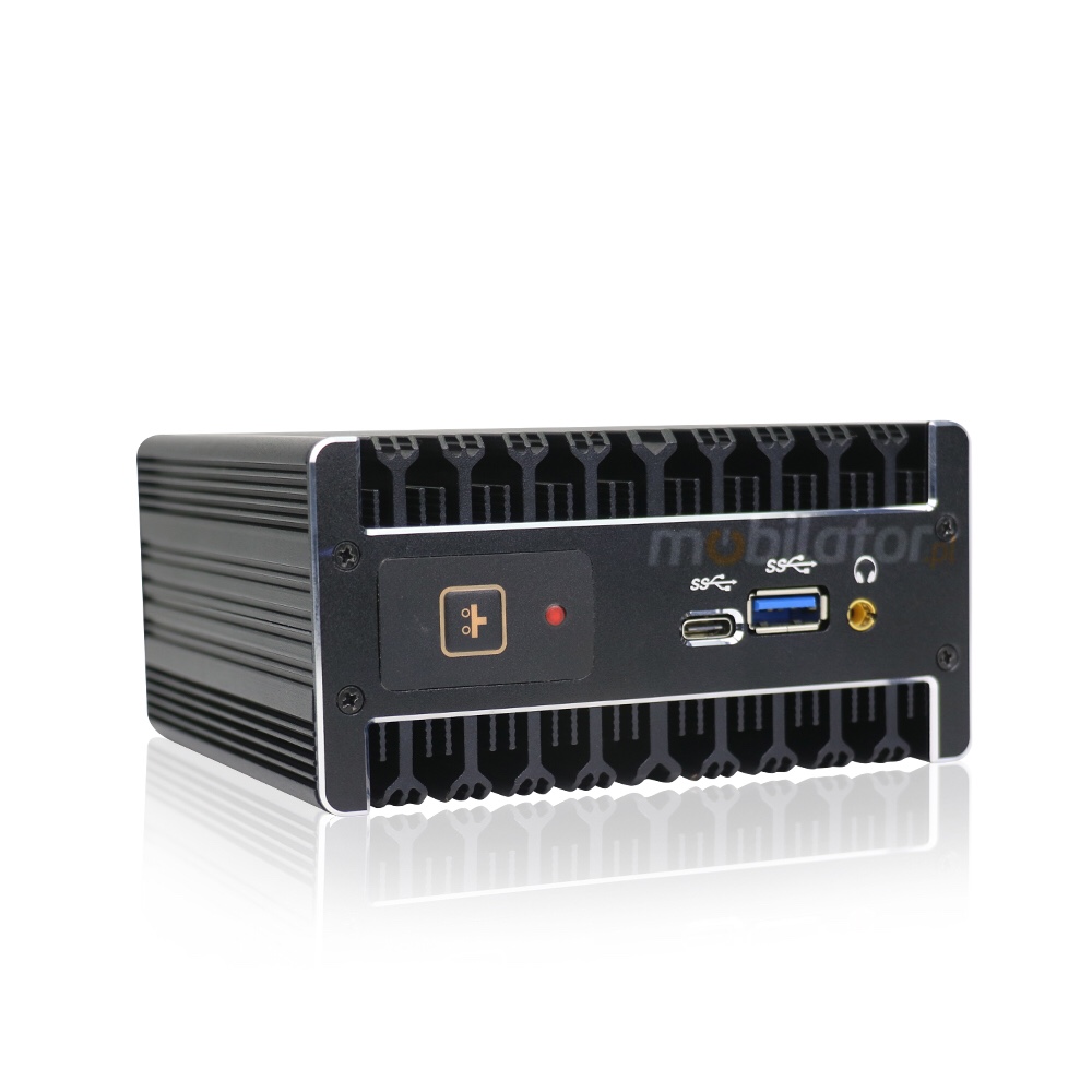 The industrial Mini PC uses a proven cooling system, based only on solid elements, mainly heat sinks.The system uses the phenomenon of metals passing thermal energy into the environment - there are no additional moving elements in the form of eg fans.This solution ensures noiseless operation, lower failure rate and greater protection against dust and other dirt while reducing the amount of energy consumed.