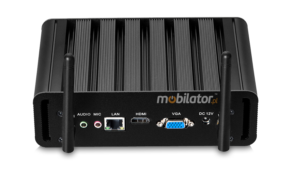 The industrial Mini PC uses a proven cooling system, based only on solid elements, mainly heat sinks. The system uses the phenomenon of metals passing thermal energy into the environment - there are no additional moving elements in the form of eg fans. This solution ensures noiseless operation, lower failure rate and greater protection against dust and other dirt while reducing the amount of energy consumed.