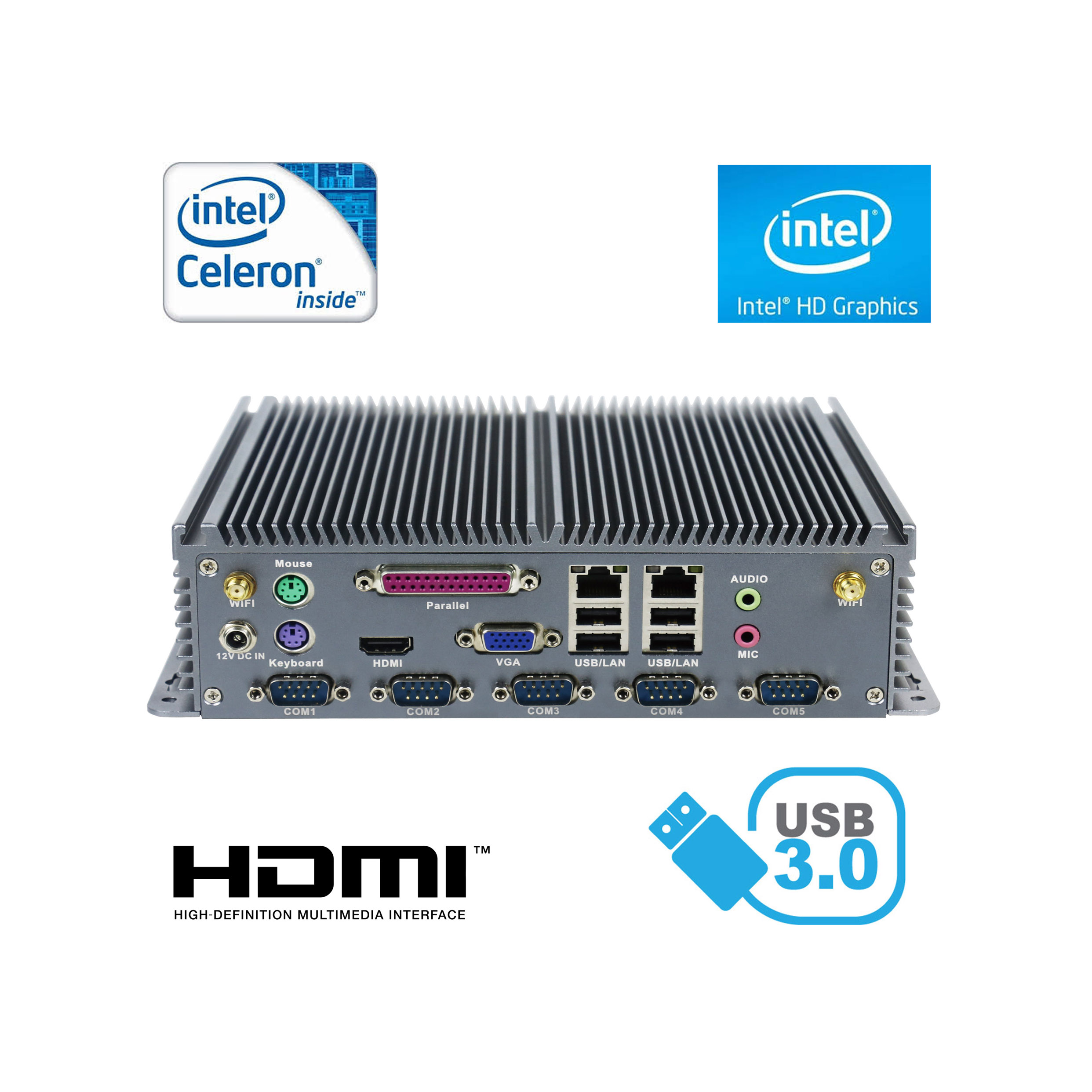 Industrial PCs are excelent in environments dominated by dust, dirt and moisture. They are ideal for applications that require quiet operation. Small and reliable MiniPC use of heat-pipe technology and aluminum fans for passive cooling.