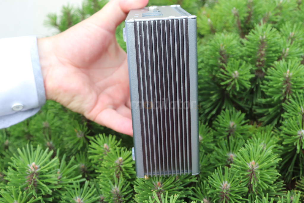 The industrial Mini PC uses a proven cooling system, based only on solid elements, mainly heat sinks.The system uses the phenomenon of metals passing thermal energy into the environment - there are no additional moving elements in the form of eg fans.This solution ensures noiseless operation, lower failure rate and greater protection against dust and other dirt while reducing the amount of energy consumed.