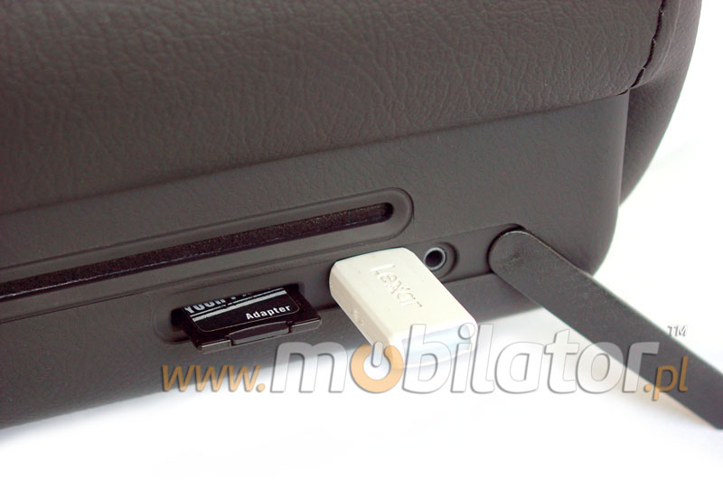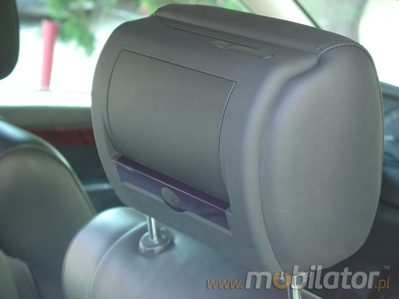 Headrest is made of ecological leather (optional - natural leather) in three colors: black, gray and beige. Match to any car. The AV in/out is responsible for the signal delivered or made available to the second headrest. The input signal can be camera, TV tuner, etc.