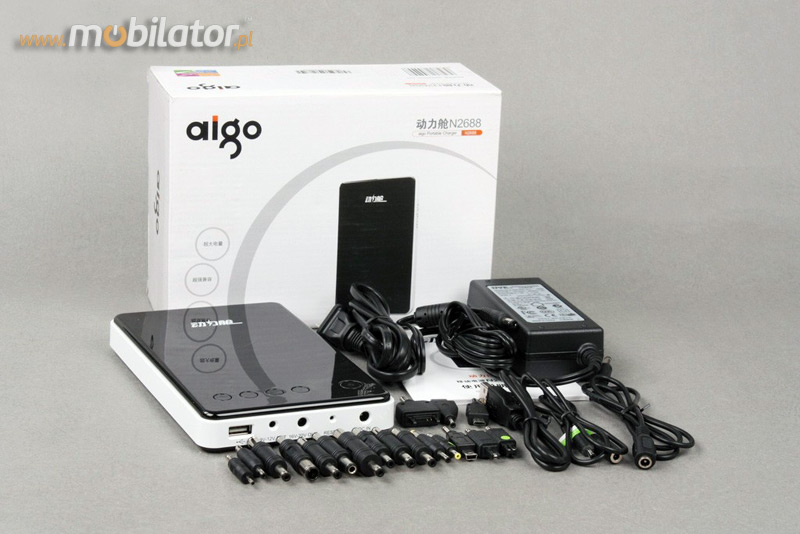Aigo Power Cabin series products are designed particularly to solve the problem of power supply to digital products. The small-size large-capacity power supplier can charge digital products of different brands, so that you will never feel upset because you digital products runn out of power. N2688 is a star product in aigo Power Cabin series for its ability to charge notebook PC and mobile phone (Nokia, Sony Ericsson, Samsung, Motorola).